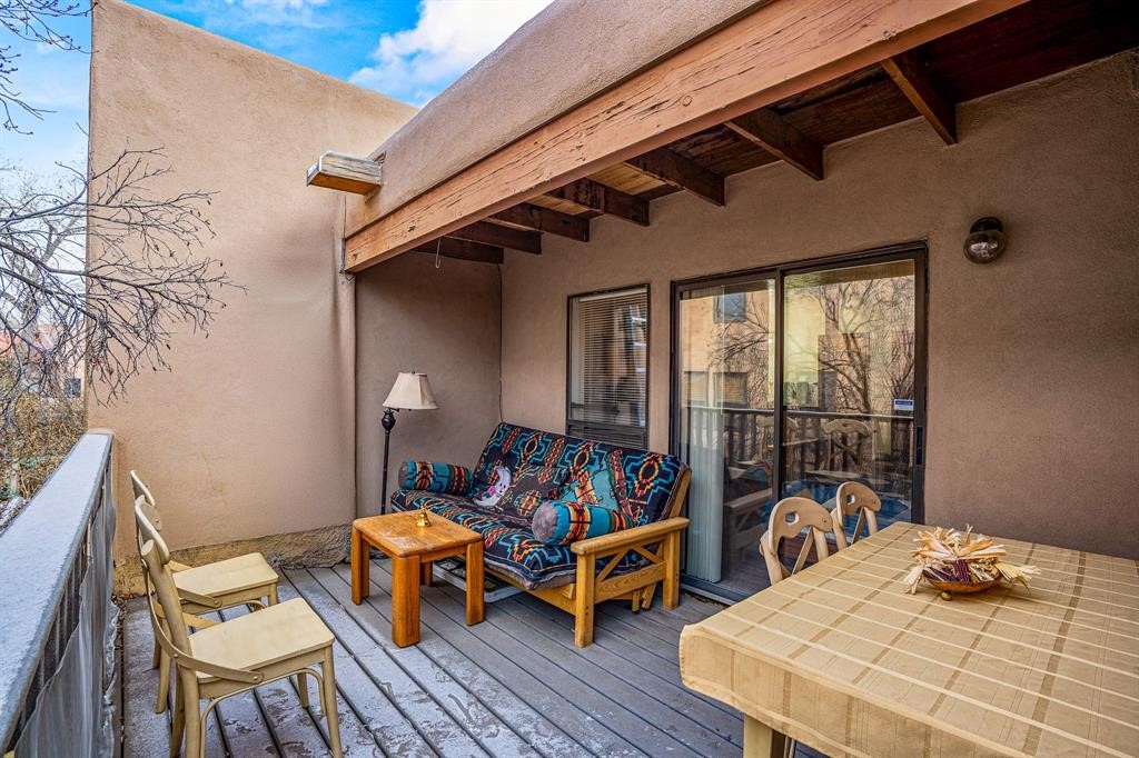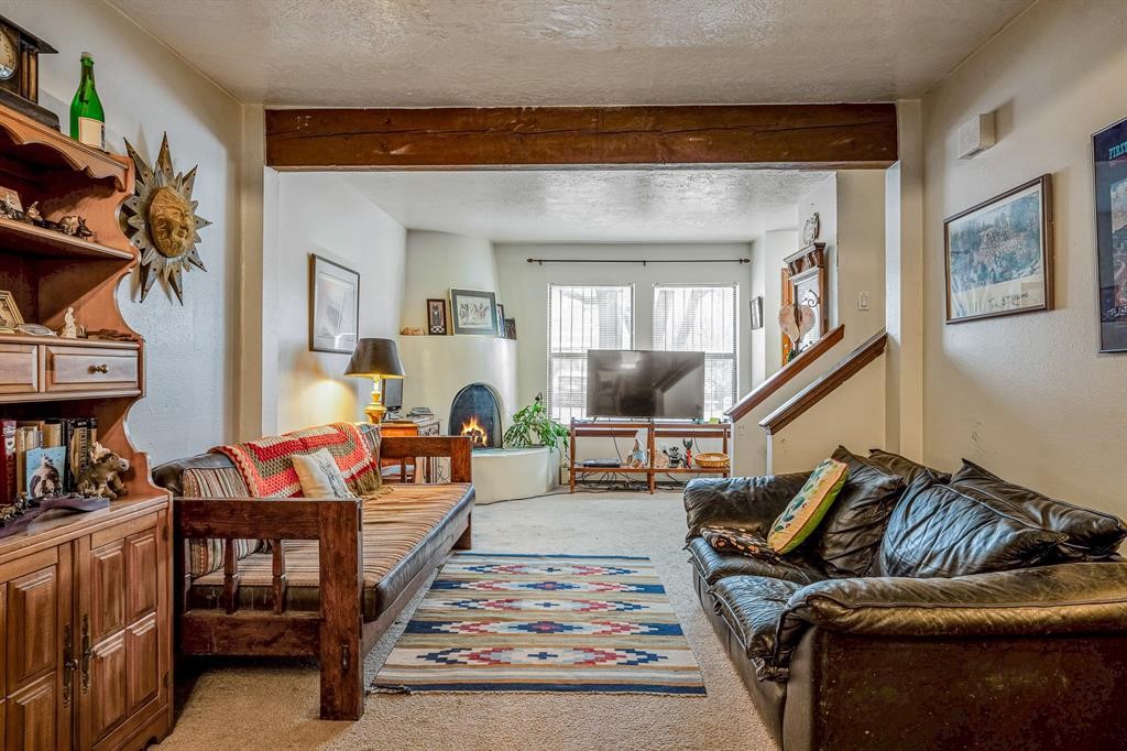 Welcome to this centrally located townhome in the heart of Santa Fe, where comfort, convenience, and charm meet. This inviting 2-bedroom, 2-bath home features an open floor plan that seamlessly connects the spacious living area with the dining and kitchen spaces, making it perfect for both relaxation and entertaining. A cozy kiva fireplace adds a touch of Southwestern warmth and character to the living room, creating a welcoming ambiance year-round. The primary bedroom is a true retreat, complete with its own private rear deck, offering a peaceful outdoor space to unwind and enjoy the serene surroundings. Below, a patio is ideal for pets, providing a safe and convenient area for them to play and explore. The second bedroom offers ample space, perfect for family, guests, or a home office. Situated next to the neighborhood park, this townhome offers easy access to a nature path that connects to other trails for those who want to use the trail City of SF trail system. Whether you're looking to enjoy the tranquility of your private space or explore the local community, this townhome is the perfect place to call home. Schedule your tour today!