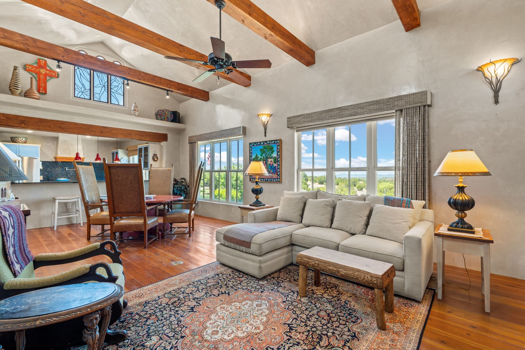Within the city limits of Santa Fe, in the northwest corridor, you’ll find established family neighborhoods like Casa Solana. With beautiful mature trees, sidewalks and paved streets, Casa Solana has a real neighborhood atmosphere. Gonzales Elementary is within walking distance to all and the Casa Solana shopping area is a treat. The homes were built in the 1960’s by developer Allen Stamm and all include vigas, hardwood floors, fireplaces and solid construction. As you travel down West Alameda, the homes begin to spread out a bit. Horse farms dot the landscape. Newly-constructed homes appear on large open tracts. A left turn off West Alameda takes you to the Santa Fe River. Right turns lead you into the hills above Santa Fe. Some lots in the hills offer 360 degree views, some a beautiful view of the Santa Fe city lights. Includes Zocolo and Santa Fe Estates.