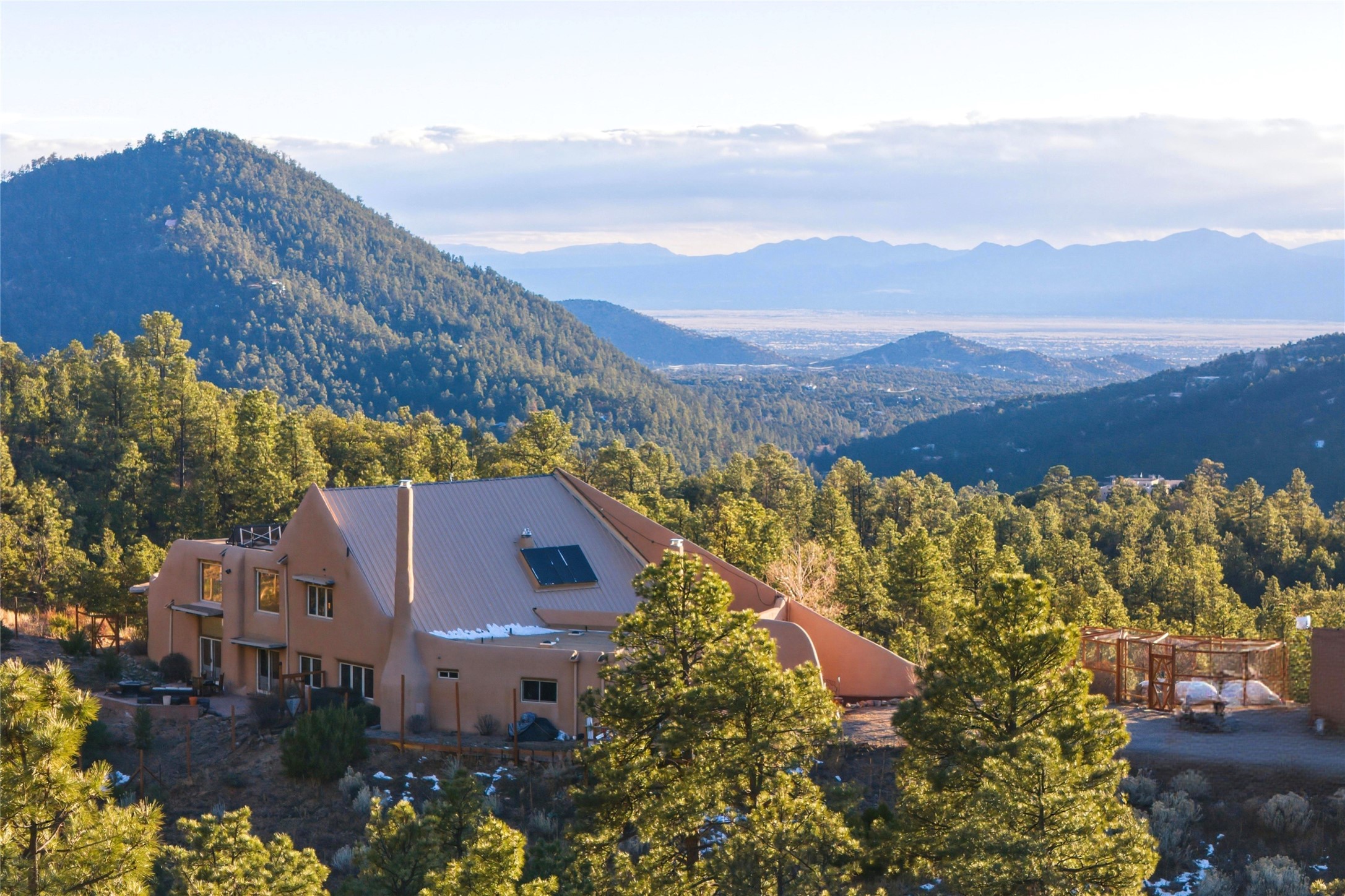 As the Old Santa Fe Trail winds north, these lovely, heavily-forested communities run alongside. Located in the foothills of the Sangres, the lower elevations provide rolling hills of pinon and juniper with the high-elevation nestled in mountainous terrain. All have wonderful views of the Sandias and famous Santa Fe sunsets. Most lots start at 2.5 acres and some are over ten. The area includes Cloudstone, La Vista, Coyote Mountain Road, Mercer, Double Arrow Road, La Barberia, Overlook I and II, north and south of Old Santa Fe Trail from Camp Stoney cutoff.