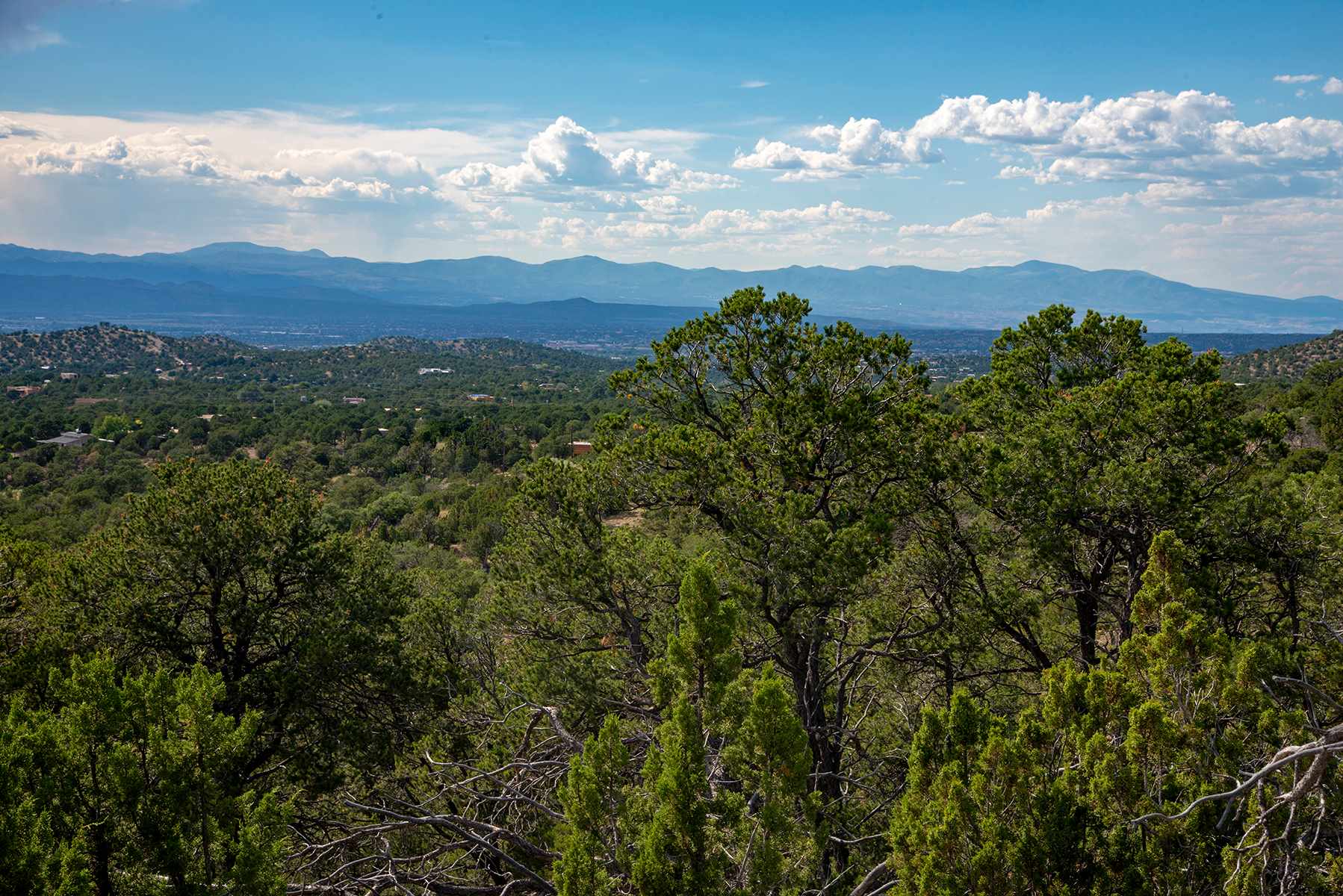 As the Old Santa Fe Trail winds north, these lovely, heavily-forested communities run alongside. Located in the foothills of the Sangres, the lower elevations provide rolling hills of pinon and juniper with the high-elevation nestled in mountainous terrain. All have wonderful views of the Sandias and famous Santa Fe sunsets. Most lots start at 2.5 acres and some are over ten. The area includes Cloudstone, La Vista, Coyote Mountain Road, Mercer, Double Arrow Road, La Barberia, Overlook I and II, north and south of Old Santa Fe Trail from Camp Stoney cutoff.