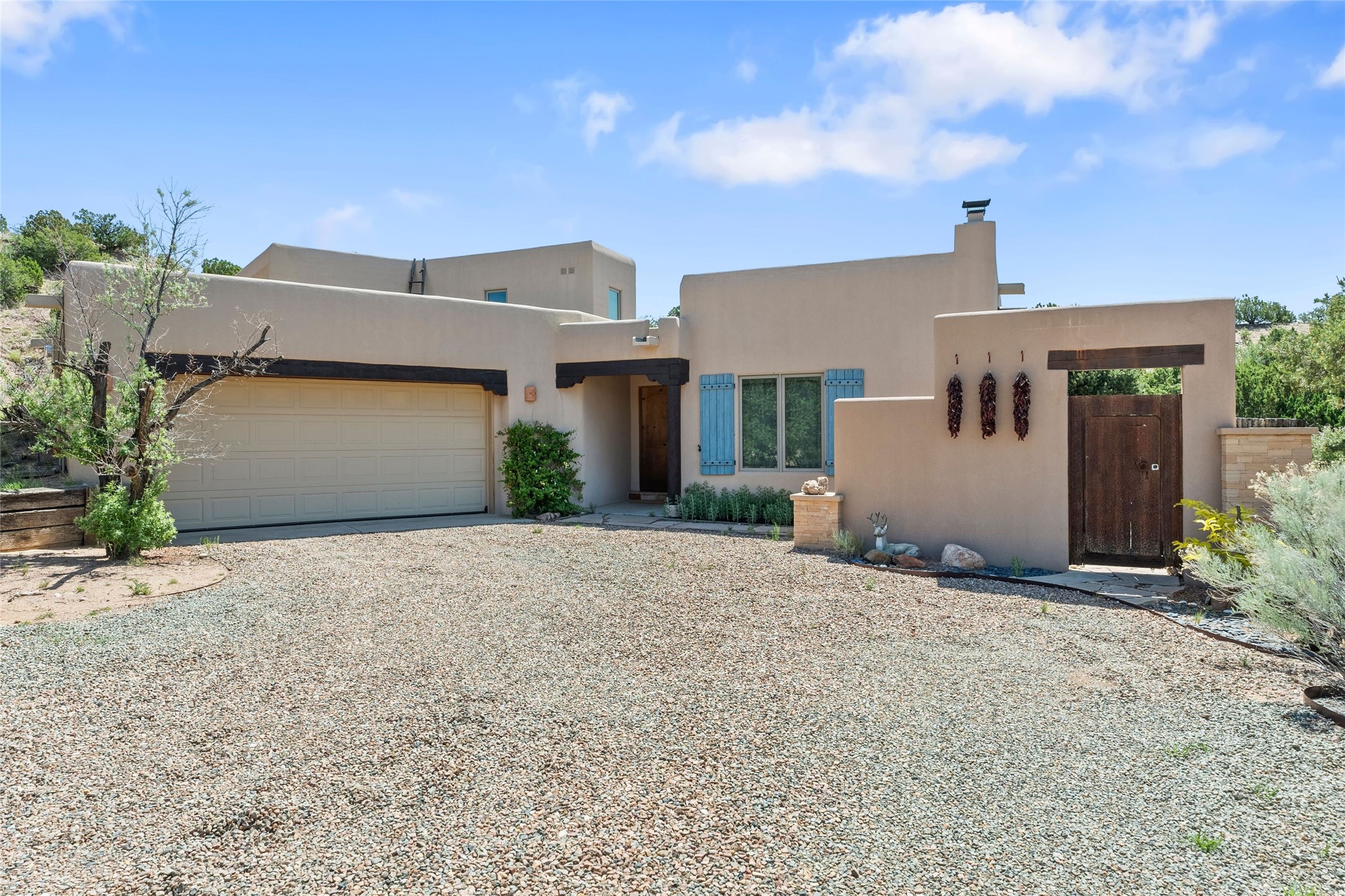 The picturesque, incorporated village of Tesuque enjoys a rural feel (there are still horse properties here) and is only five minutes north of Santa Fe, just beyond Bishop’s Lodge. Known for its valley of lush vegetation and the Tesuque River, as well as hilltop sites with views and traditional Northern New Mexico pinon and juniper, Tesuque attracts artists, professionals, retirees, second home owners, and celebrities looking to hide out. There is a small commercial community consisting of the landmark Tesuque Market, the restaurant El Nido and Shidoni Foundry.